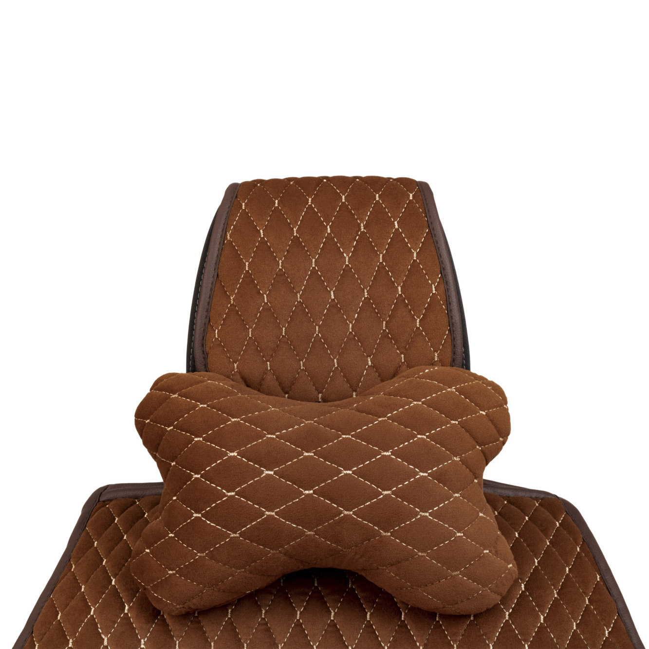 Cojín para reposacabezas de coche Alfa Cars de alcántara 27×16 cm, marrón, rombo pequeño