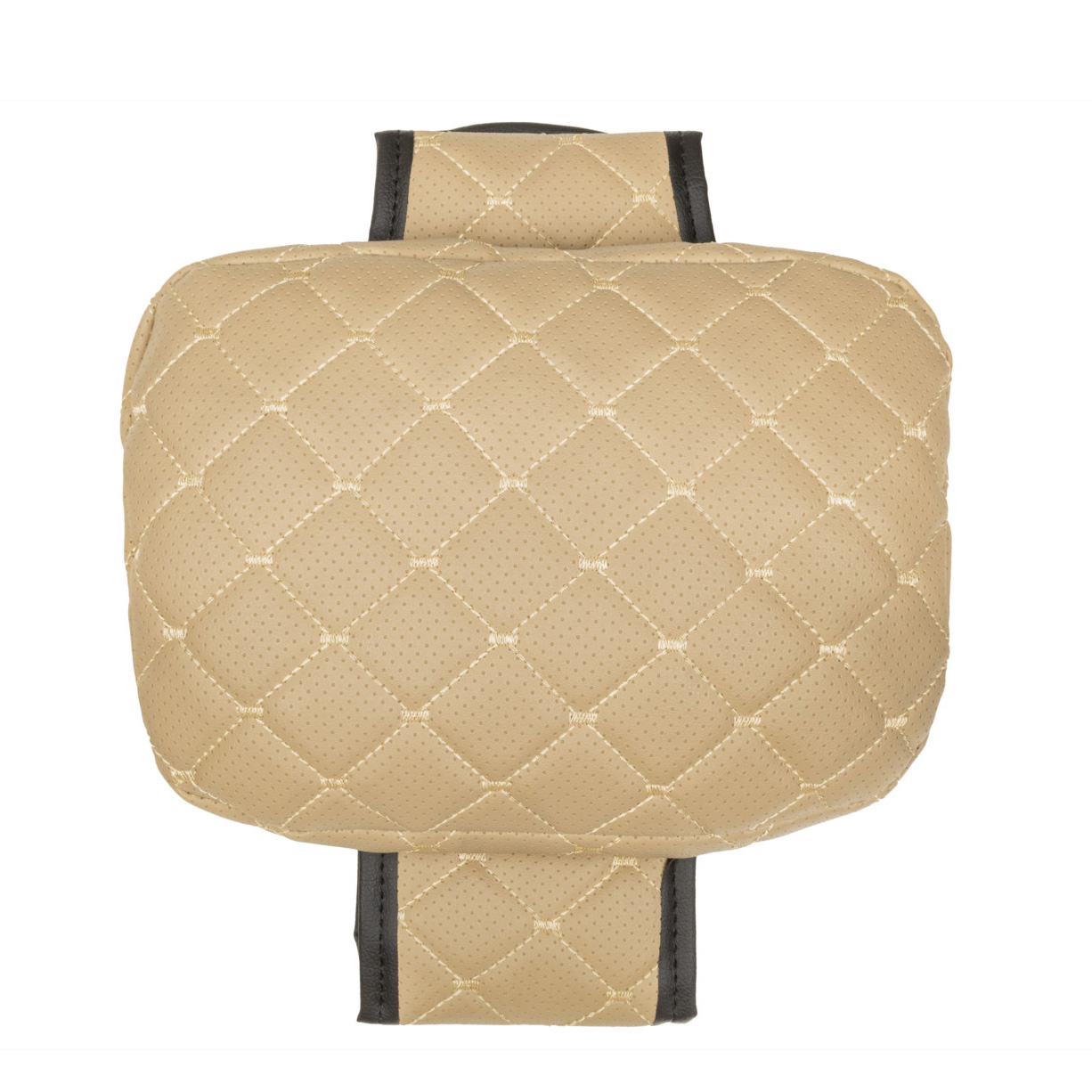 Cojín ajustable para reposacabezas de coche de cuero ecológico, patrón de rombo beige con costura beige