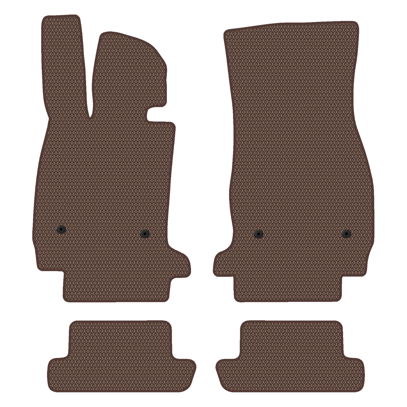 Recomendamos pedir alfombrillas EVA personalizadas para tu modelo de coche. Cubren la máxima superficie del suelo adaptándose a todas las curvas y formas. Son resistentes tanto al calor como al frío, mantienen su elasticidad entre -50℃ y +70℃, y no tienen olor. Perfectas tanto para climas cálidos del sur como fríos del norte.
