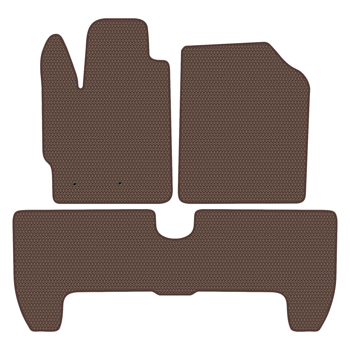 Recomendamos pedir alfombrillas EVA personalizadas para tu modelo de coche. Cubren la máxima superficie del suelo adaptándose a todas las curvas y formas. Son resistentes tanto al calor como al frío, mantienen su elasticidad entre -50℃ y +70℃, y no tienen olor. Perfectas tanto para climas cálidos del sur como fríos del norte.